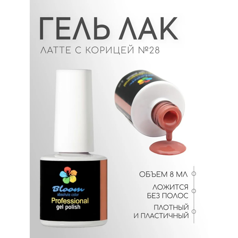 Гель-лак Bloom Латте с корицей (№28) 8 мл. 90% оттенков имеют плотный стабильный пигмент, каучуковую основу, пластичные. Сочетаются с базами и топами других фирм.