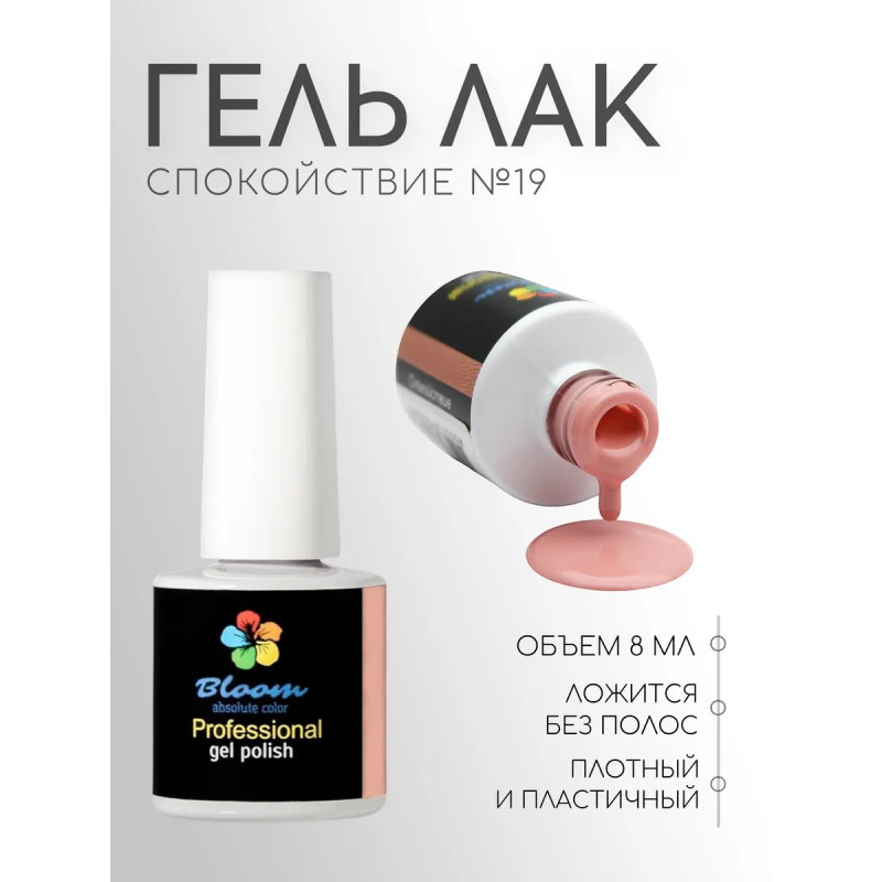 Гель-лак Bloom Спокойствие (№19) 8 мл. 90% оттенков имеют плотный стабильный пигмент. Каучуковая основа, пластичные. Сочетаются с базами и топами других фирм.