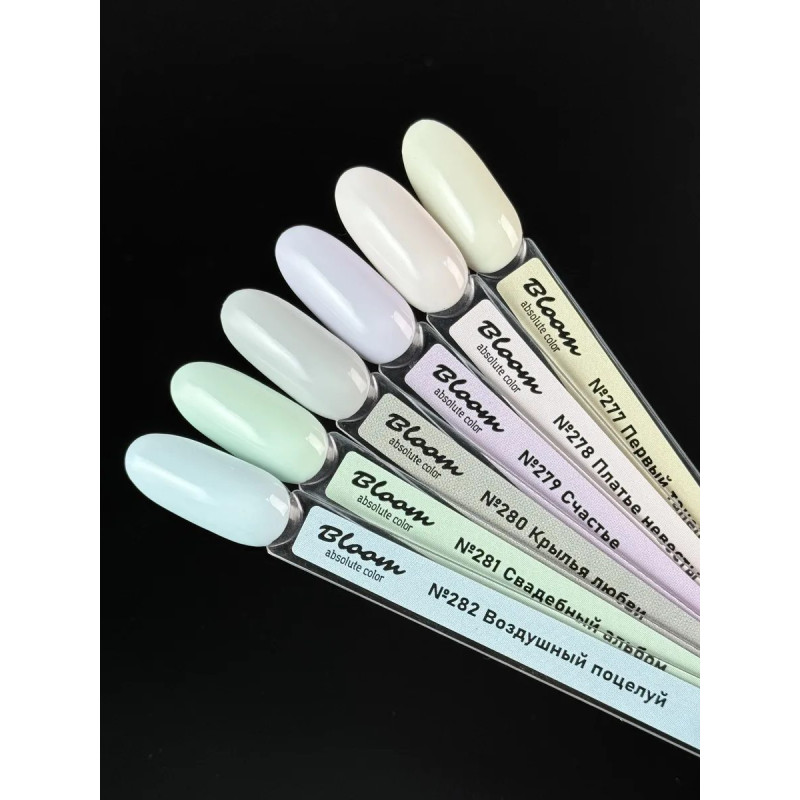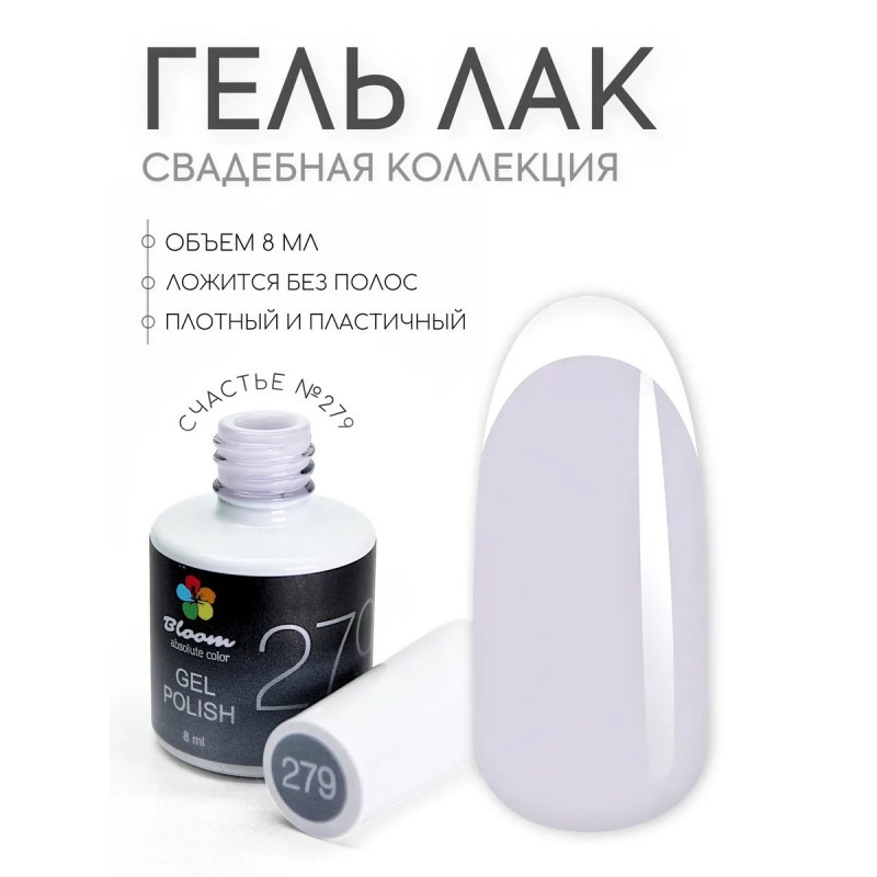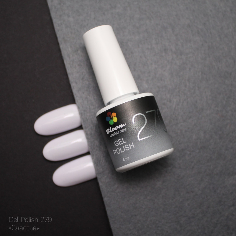 Гель-лак Bloom Счастье (№279) 8 мл. 90% оттенков имеют плотный стабильный пигмент на каучуковой основе, пластичные. Сочетаются с базами и топами других фирм.