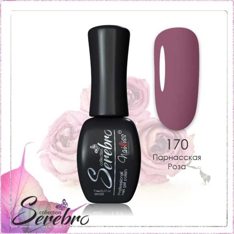 Гель-лак Serebro 170, 11 мл. Гель-лак средней консистенции позволяет избежать затеков и способствует равномерному покрытию ногтевой пластины, не создавая лишнюю толщину. Для плотного цвета достаточно нанести 1-2 слоя средства. Продукт имеет приятный аромат и не тускнеет в процессе носки.