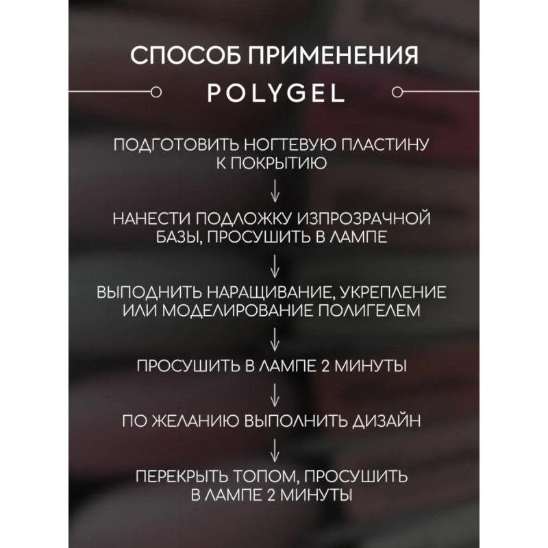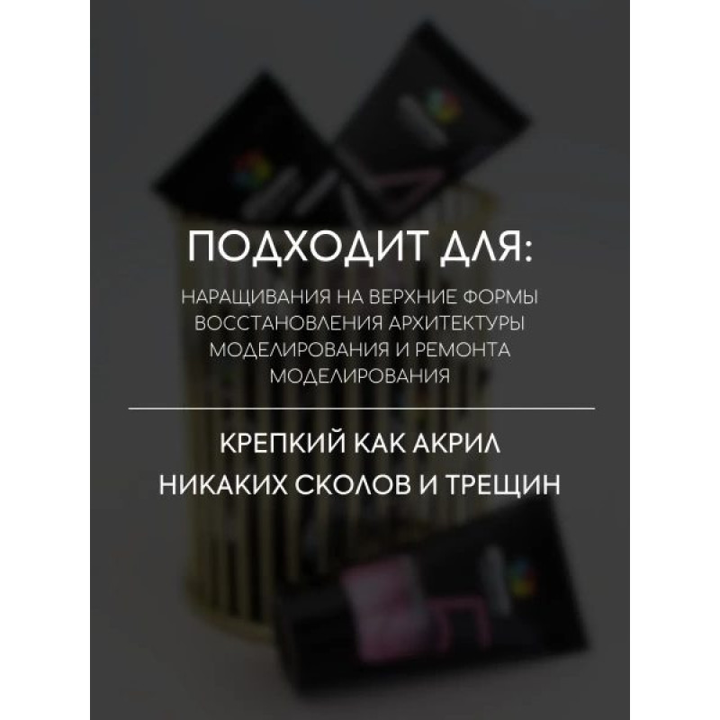 • Применение: моделирование, ремонт ногтей, наращивание на формах, восстановление архитектуры
