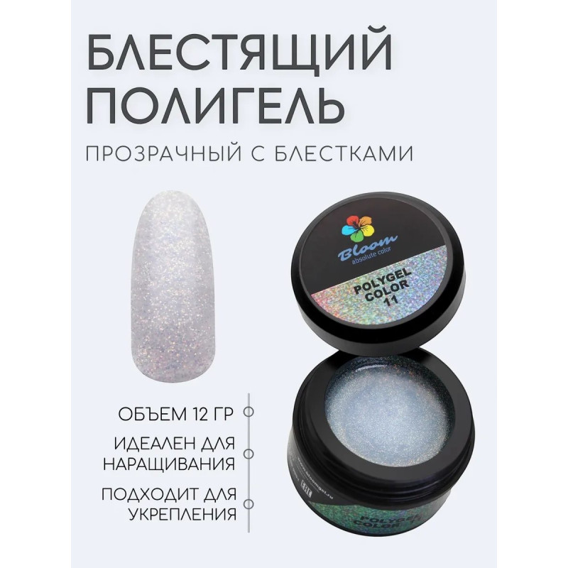 Полигель Bloom 12мл 11 прозрачный с блестками Л