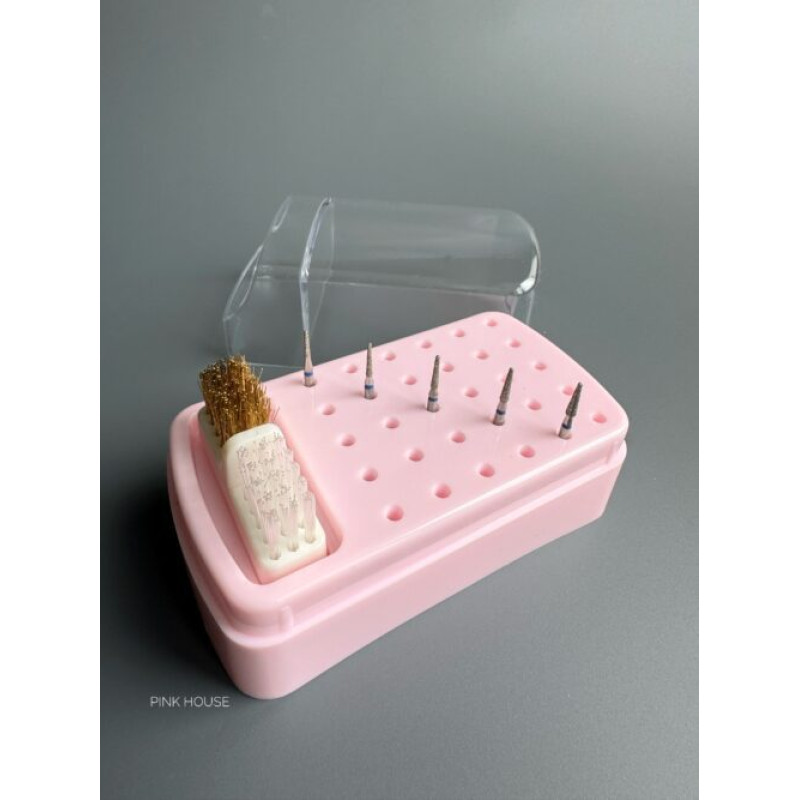 Удобный, компактный органайзер для хранения и перемещения фрез. В подставке компактно разместятся до 30 штук. Съемная прозрачная крышка защитит содержимое от пыли и влаги и удобна при выборе инструмента.