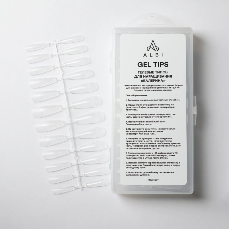 Гелевые типсы изготовлены из уникального моделирующего гель-полимера. Они тонкие в зоне ногтевого ложа (0,3 мм) и более прочные на свободном крае (0,5 мм), что обеспечивает минимальный опил у кутикулы и идеальную носибельность. Ноготки, нарощенные на таких типсах, отличаются прочностью, гибкостью, легко выдерживают повседневные нагрузки, амортизируют при ударах и идентичны натуральным ногтям. С ними комфортно и легко работать мастерам с любым опытом.