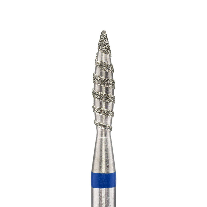 Фреза КМИЗ алмазная Торнадо Пламя 2.1*10 мм средний абразив 866.104.243.100.021. Применяется в аппаратном маникюре и педикюре.