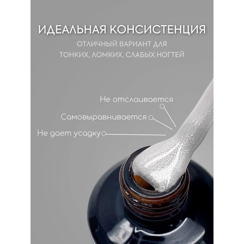 База позволяет донарастить ногти до 5 мм. Минимальная усадка во время ношения. Сушить в LED 1 минуту, в УФ 2 минуты.