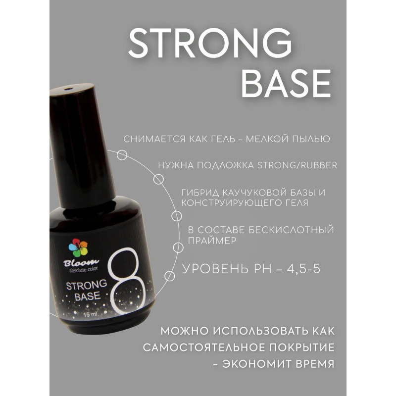Гель-лак Bloom база 15мл жесткая 08 молочная с микроблеском. Жесткая гибридная база для тонких и ломких ногтей (конструирующий гель+каучуковая база). Оптимальная консистенция и приятные натуральные оттенки.