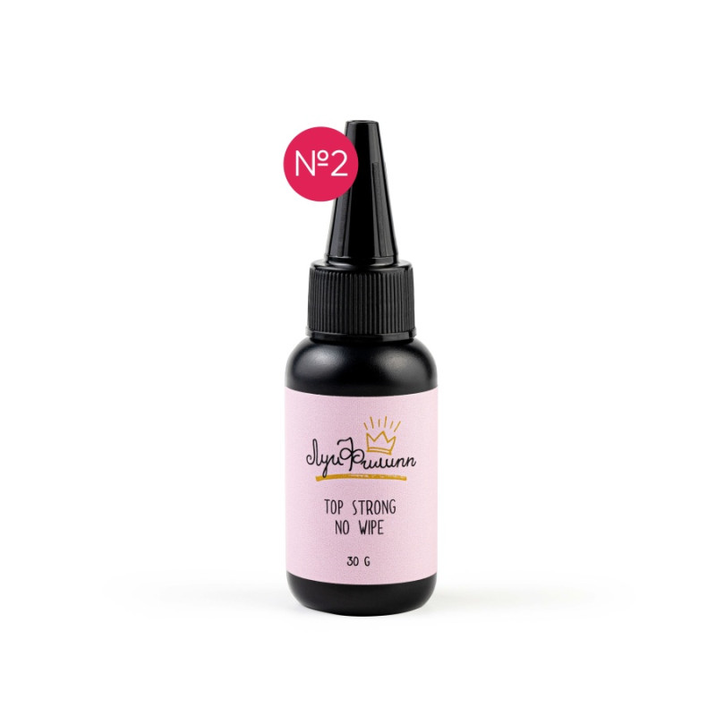 Финишное покрытие Top Strong no wipe без липкого слоя обеспечивает неповторимый блеск. Оно сохраняет блеск при длительной носке и устойчиво к сколам.