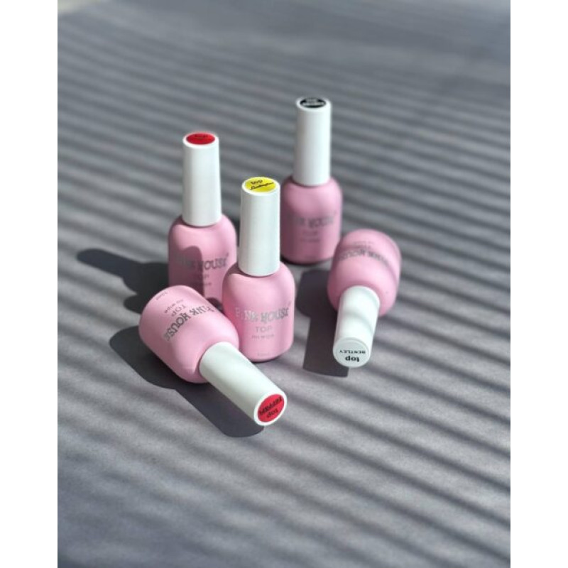 Цветной топ без липкого слоя. Очень удобно использовать как основу для втирок, покрывать после красного смоделированного геля, чтобы довести работу до идеала. Поможет убрать неточности на желтом.