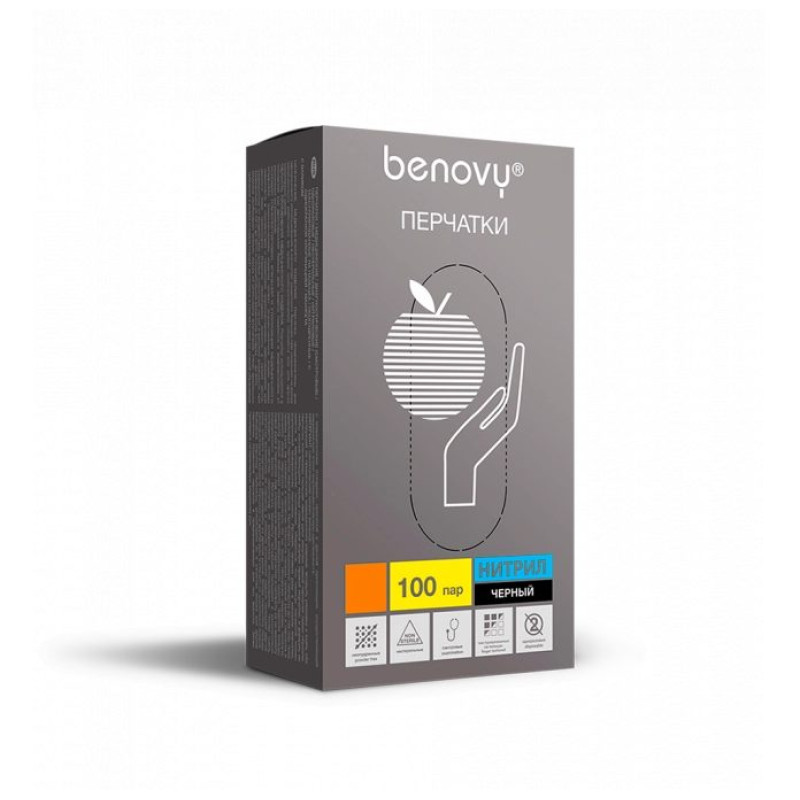 Перчатки одноразовые нитриловые benovy Черные XS 100 шт