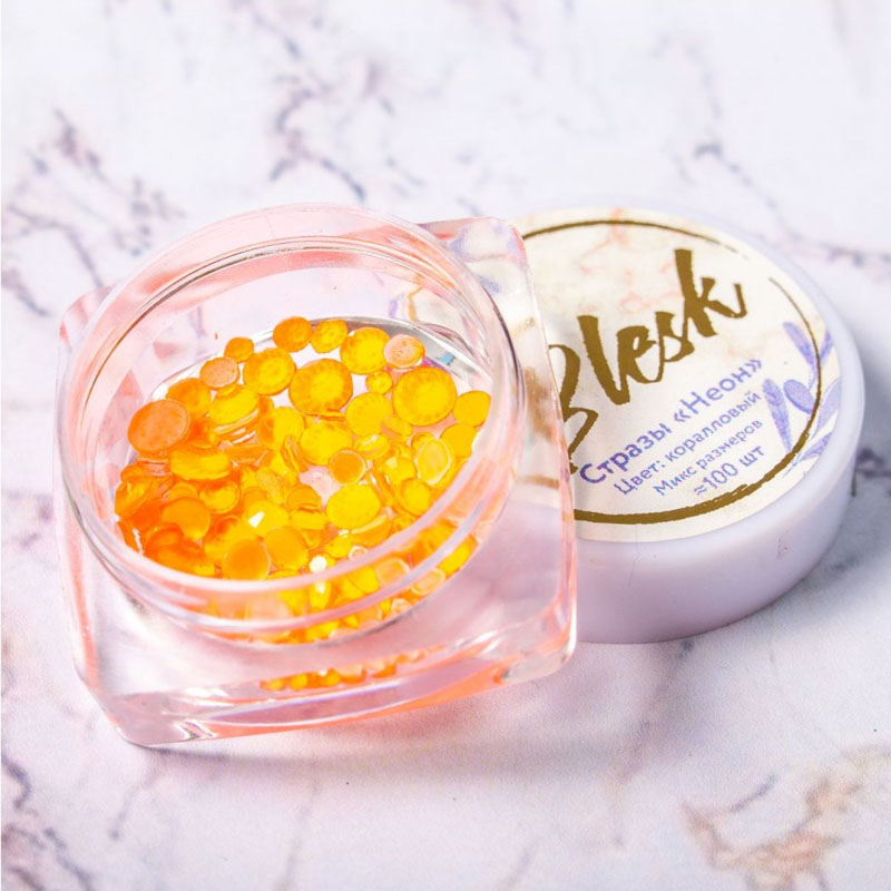 Стразы неоновые разноразмерные "Blesk", цвет: коралловый ~100 шт