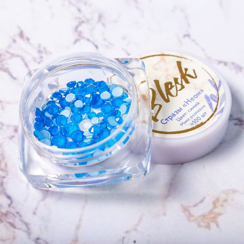 Стразы неоновые разноразмерные "Blesk", цвет: синий ~100 шт