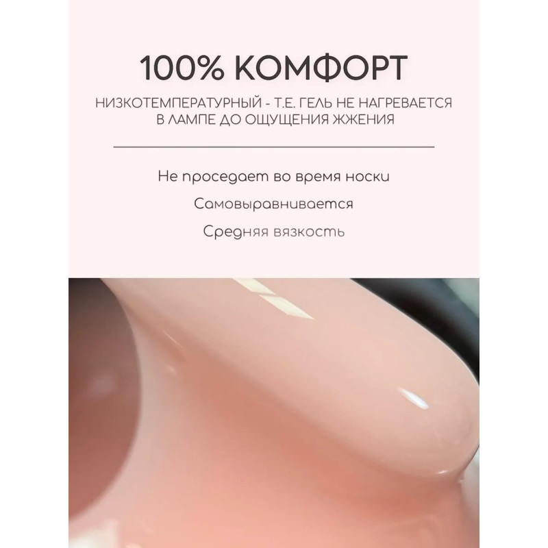 Гель конструирующий имеет среднюю консистенцию, выравнивается и подходит для укрепления и моделирования. Быстро просыхает в лампах УФ и LED. Сочетается с любой базой и топом.