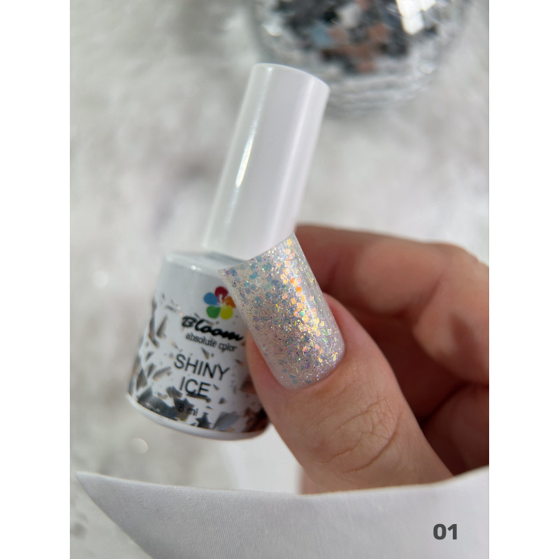 Гель-лак Bloom Shiny ice 01, 8 мл. Снежные осколки для витражных и сверкающих дизайнов, можно наносить в любую толщину.