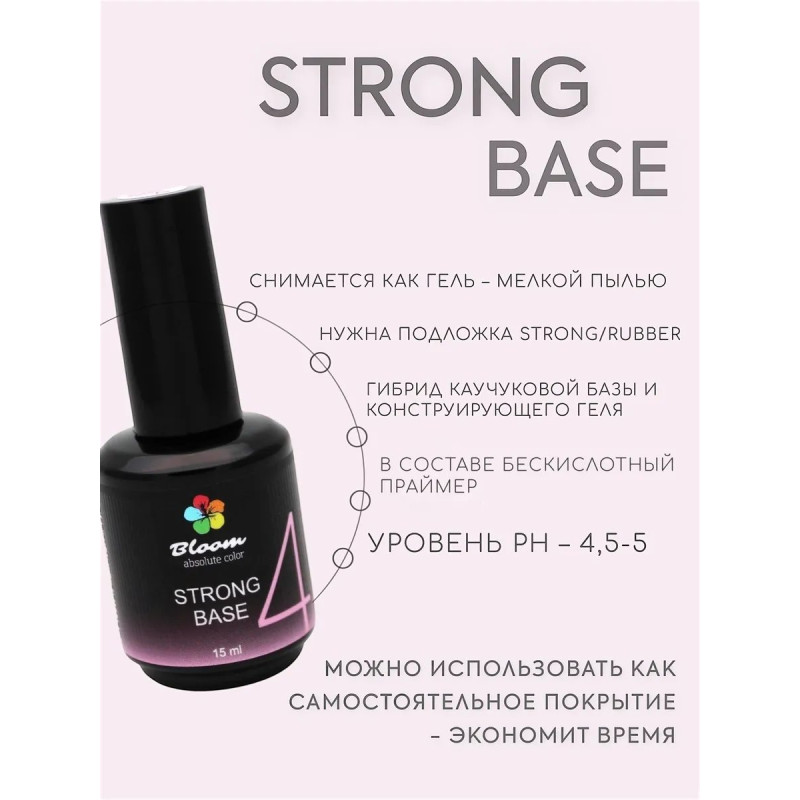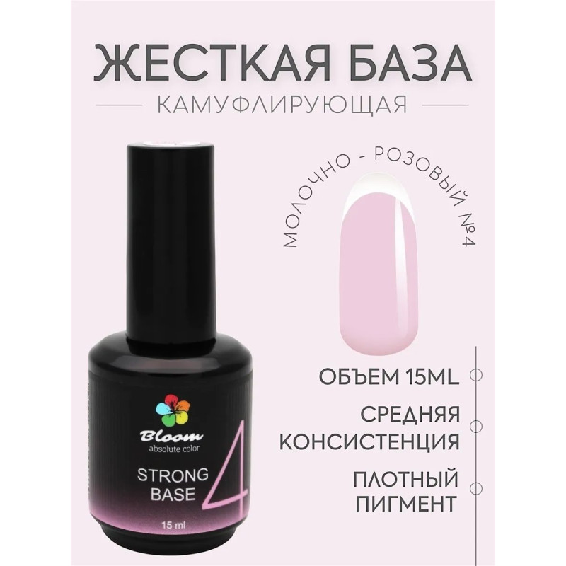 Гель-лак Bloom база 15мл жесткая 04 бледно розовый. Жесткая гибридная база для тонких и ломких ногтей (конструирующий гель+каучуковая база). Оптимальная консистенция и приятные натуральные оттенки.