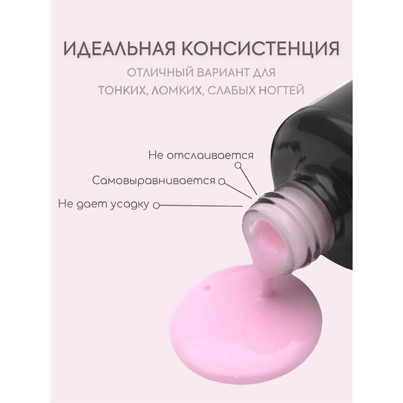 База позволяет донарастить ногти до 5 мм. Минимальная усадка во время ношения. Сушить в LED 1 минуту, в УФ 2 минуты.