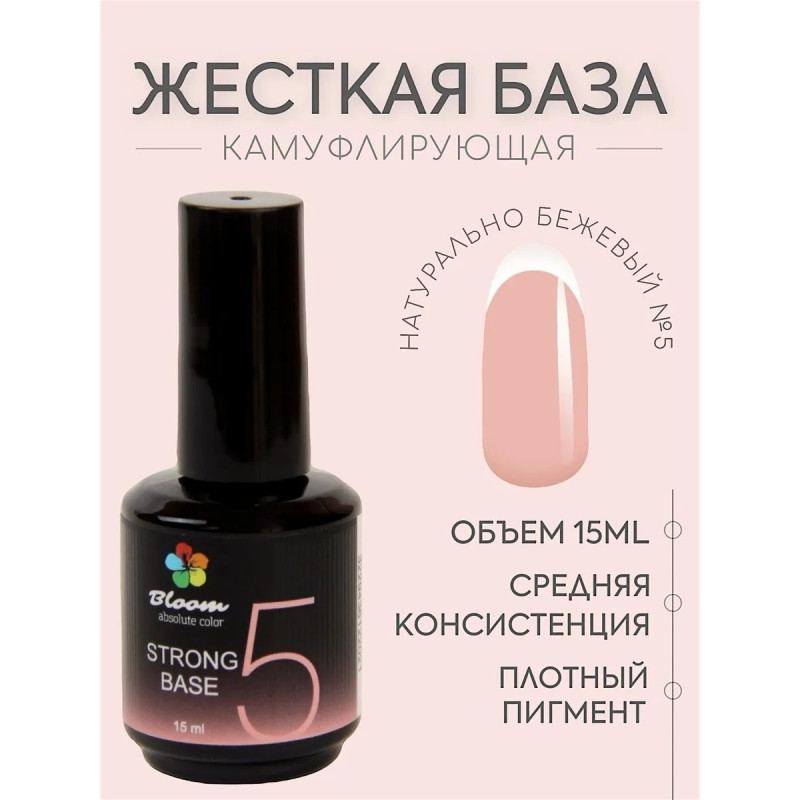 Гель-лак Bloom база 15мл жесткая 05 натурально бежевый. Жесткая гибридная база для тонких и ломких ногтей (конструирующий гель+каучуковая база). Оптимальная консистенция и приятные натуральные оттенки. База позволяет донарастить ногти до 5 мм. Минимальная усадка во время ношения.