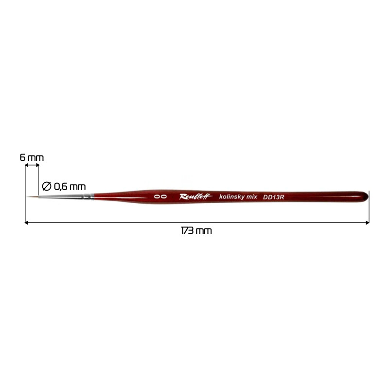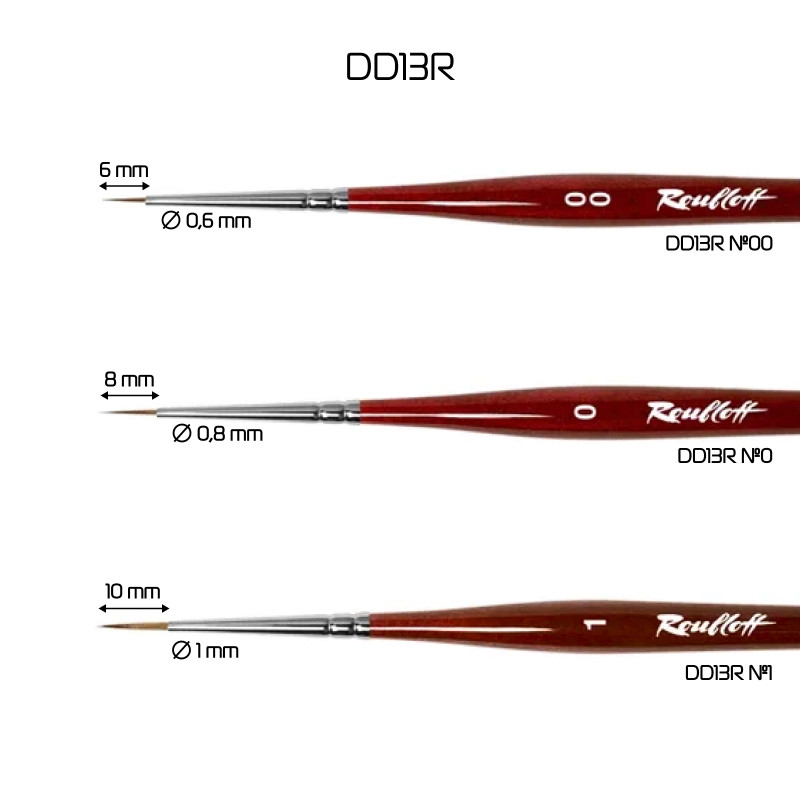 Кисть для дизайна ногтей Roubloff DD13R круглой формы предназначена для прорисовки тонких линий. Пучок кисти сделан из микса натурального волоса колонка с синтетикой.