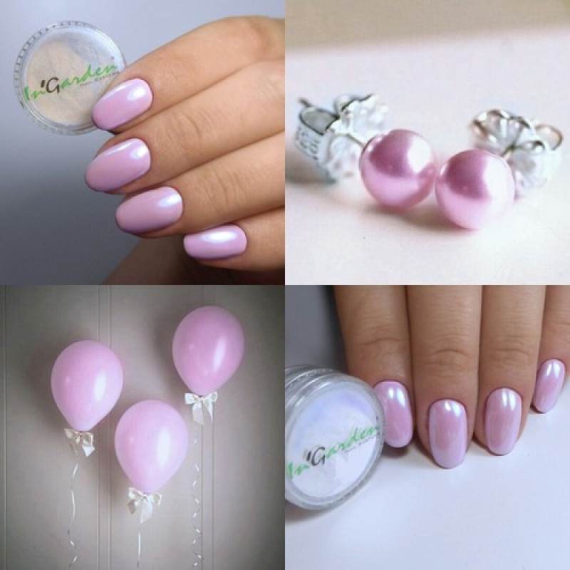 Работа с данным пигментом проста и понятна даже начинающим мастерам. Она позволяет получить завораживающее сияние благородного жемчуга на ногтях.