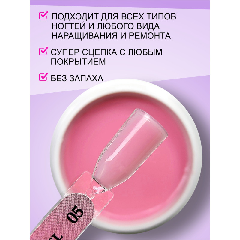 Полигель позволяет создавать натуральные и эстетичные ногти в тонком слое, которые держатся долго без частой коррекции. Обеспечивает длительную носку до 6 недель без сколов и отслоек. Отлично подходит для ремонта, коррекции, выравнивания дефектов ногтя и техники без опила. Перекрывает ногтевую пластину без проплешин в один слой. Ускоряет процесс процедуры благодаря простоте в работе.