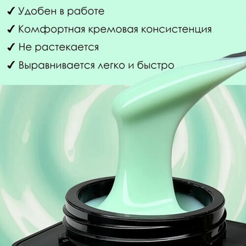 Гель для наращивания ногтей обладает средней кремовой консистенцией, что делает его послушным в работе. Его формула обеспечивает пластичность в тонком слое для избежания отслоек и высокую прочность в толстом слое для долговечности маникюра. Гель легко распределяется, обеспечивая ровное и гладкое покрытие.