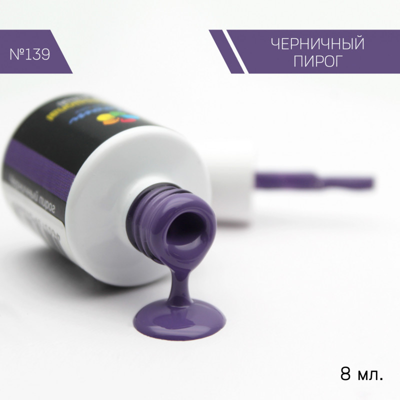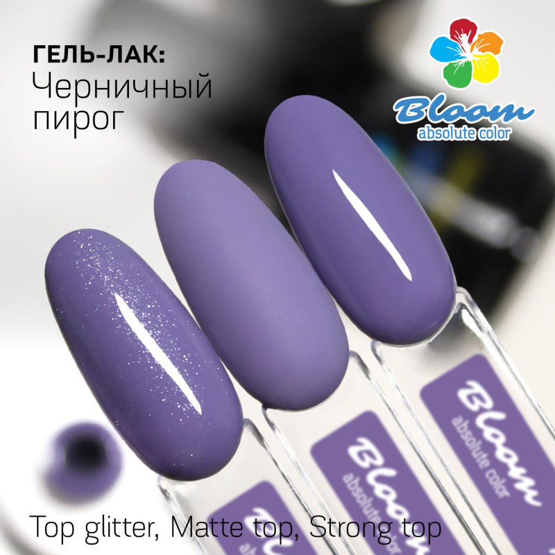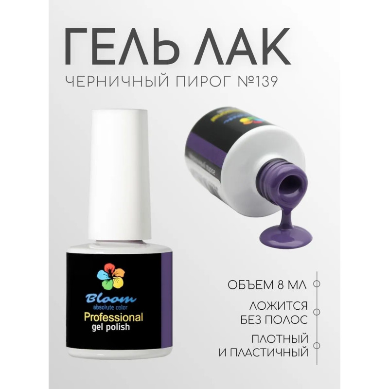 Гель-лак Bloom Черничный пирог (№139) 8 мл. 90% оттенков имеют плотный стабильный пигмент. Каучуковая основа, пластичные. Сочетаются с базами и топами других фирм.