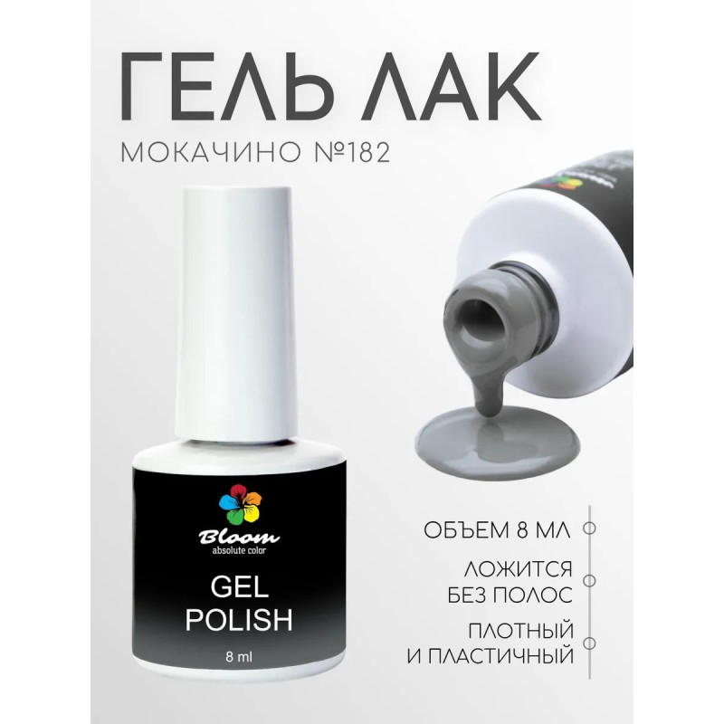 Гель-лак Bloom Мокачино (№182) 8 мл. 90% оттенков имеют плотный стабильный пигмент. Каучуковая основа, пластичные. Сочетаются с базами и топами других фирм.