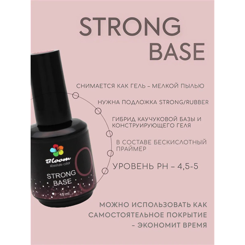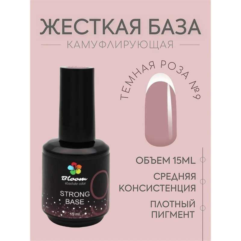Гель-лак Bloom база 15мл жесткая 09 чайная роза. Жесткая гибридная база для тонких и ломких ногтей (конструирующий гель+каучуковая база). Оптимальная консистенция и приятные натуральные оттенки.