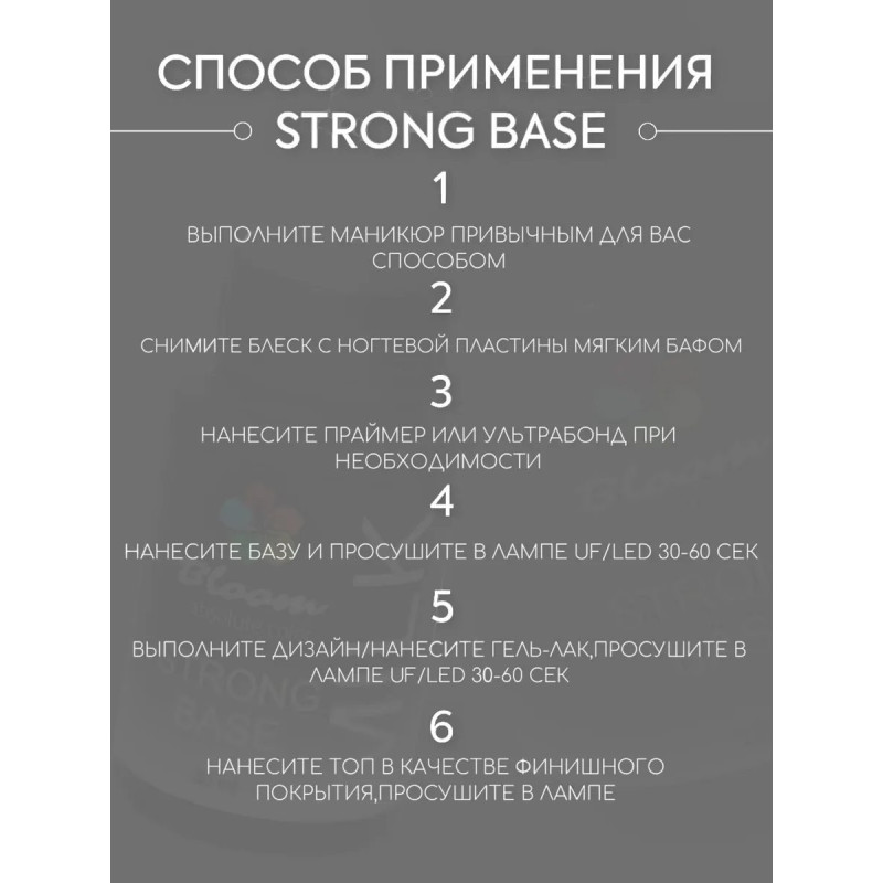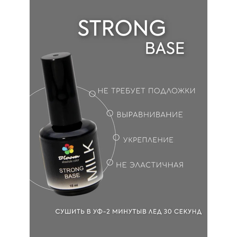 Гель-лак Bloom база 15мл жесткая молочная. Жесткая камуфлирующая база для укрепления, выравнивания и наращивания ногтевой пластины. Прочная, без сколов, трещин, усадки и отслоек. Сочетается с другими гель-лаками.