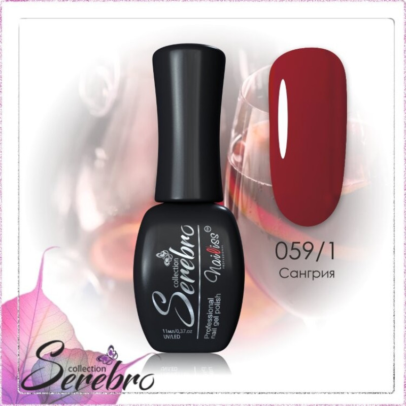 Гель-лак Serebro 059/1, 11 мл. Гель-лак средней консистенции позволяет избежать затеков и способствует равномерному покрытию ногтевой пластины, не создавая лишнюю толщину. Для плотного цвета достаточно нанести 1-2 слоя средства. Продукт имеет приятный аромат и не тускнеет в процессе носки.