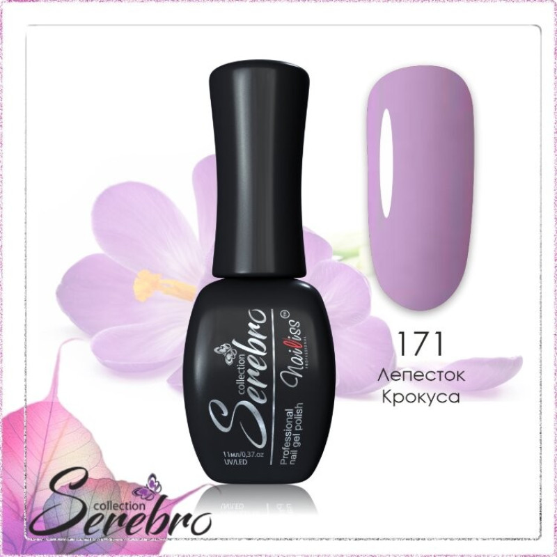 Гель-лак Serebro 171, 11 мл. Гель-лак средней консистенции позволяет избежать затеков и способствует равномерному покрытию ногтевой пластины, не создавая лишнюю толщину. Для плотного цвета достаточно нанести 1-2 слоя средства. Продукт имеет приятный аромат и не тускнеет в процессе носки.