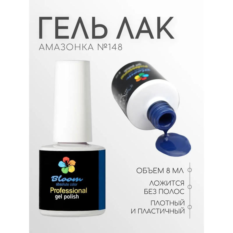 Гель-лак Bloom Амазонка (№148) 8 мл. 90% оттенков имеют плотный стабильный пигмент, каучуковая основа, пластичные. Сочетаются с базами и топами других фирм.
