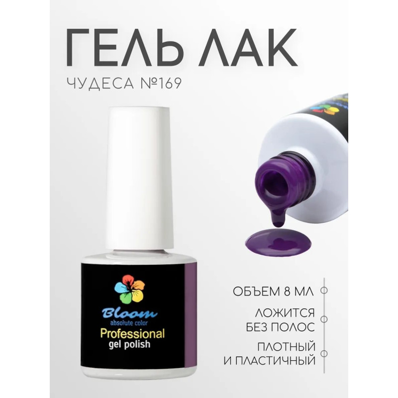 Гель-лак Bloom Чудеса (№169) 8 мл. 90% оттенков имеют плотный стабильный пигмент. Каучуковая основа, пластичные. Сочетаются с базами и топами других фирм.