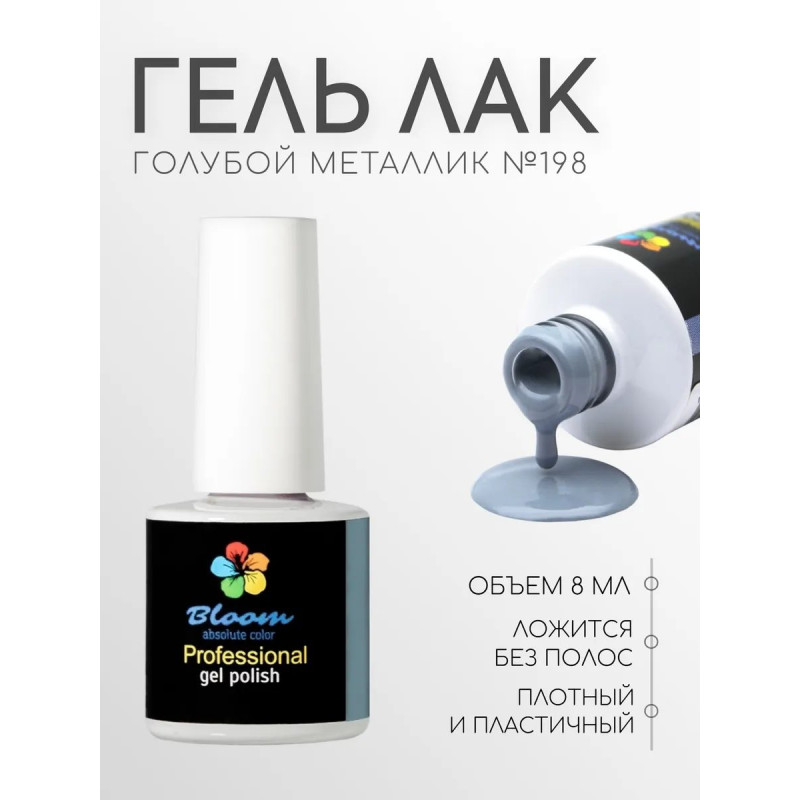 Гель-лак Bloom Далекий горизонт (№198) 8 мл. 90% оттенков имеют плотный стабильный пигмент. Каучуковая основа, пластичные. Сочетаются с базами и топами других фирм.