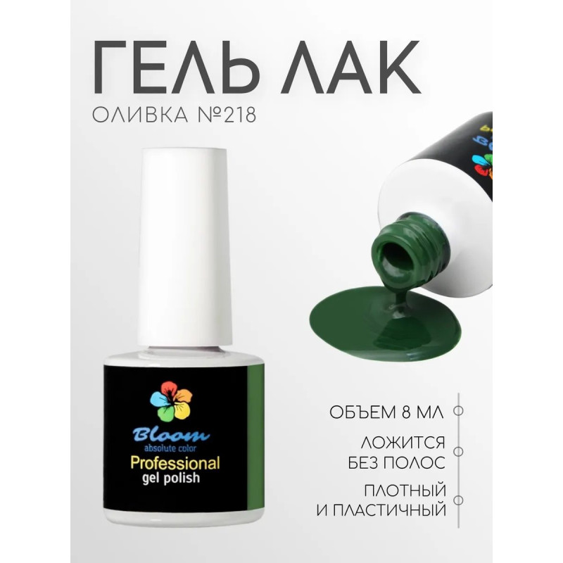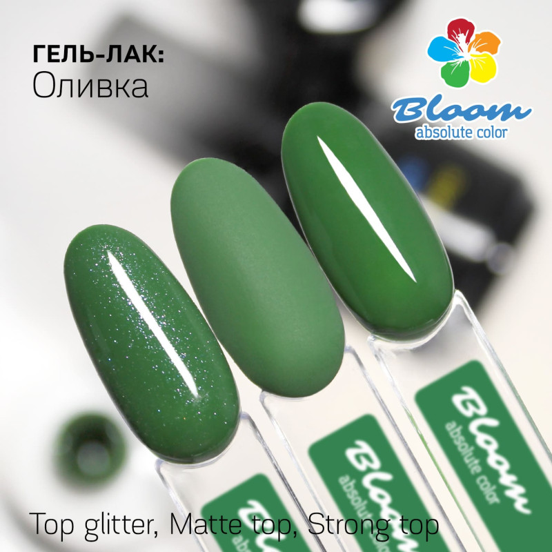 Гель-лак Bloom Оливка (№218) 8 мл. 90% оттенков имеют плотный стабильный пигмент. Каучуковая основа, пластичные. Сочетаются с базами и топами других фирм.