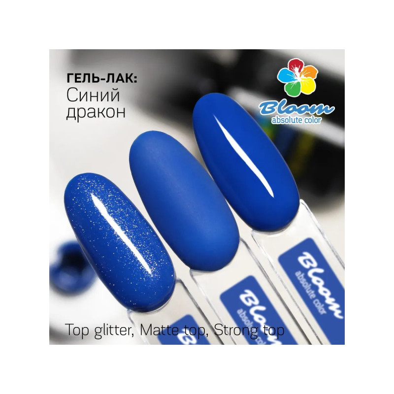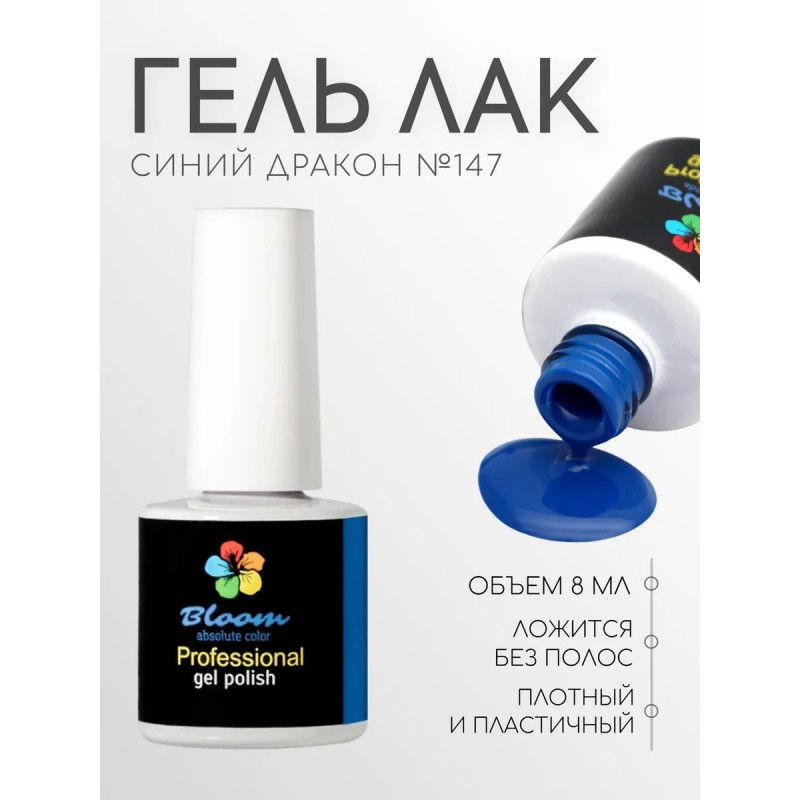 Гель-лак Bloom Синий дракон (№147) 8 мл. 90% оттенков имеют плотный стабильный пигмент. Каучуковая основа, пластичные. Сочетаются с базами и топами других фирм.