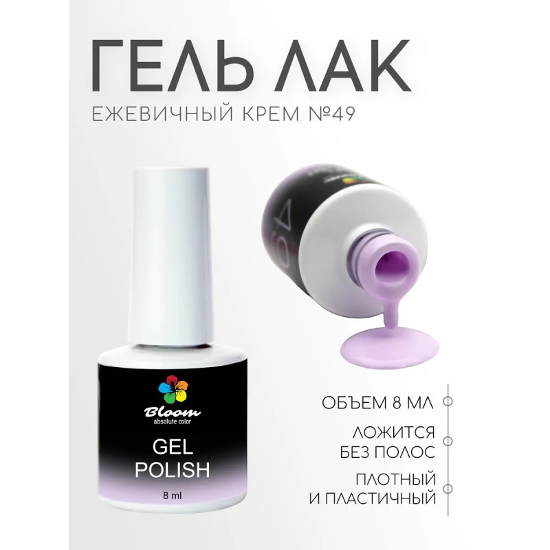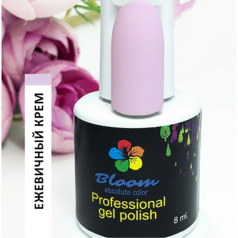 Гель-лак Bloom Ежевичный крем (№49) 8 мл. 90% оттенков имеют плотный стабильный пигмент. Каучуковая основа, пластичные. Сочетаются с базами и топами других фирм.