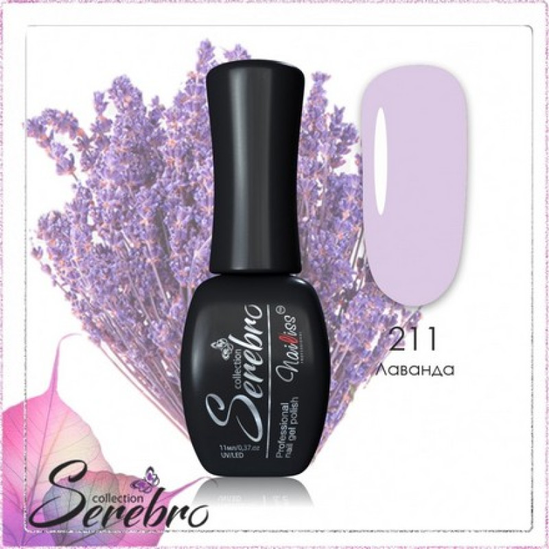 Гель-лак Serebro 211 имеет среднюю консистенцию, что позволяет избежать затеков и способствует равномерному покрытию ногтевой пластины без лишней толщины. Для плотного цвета достаточно нанести 1-2 слоя средства. Продукт обладает приятным ароматом и не тускнеет в процессе носки.