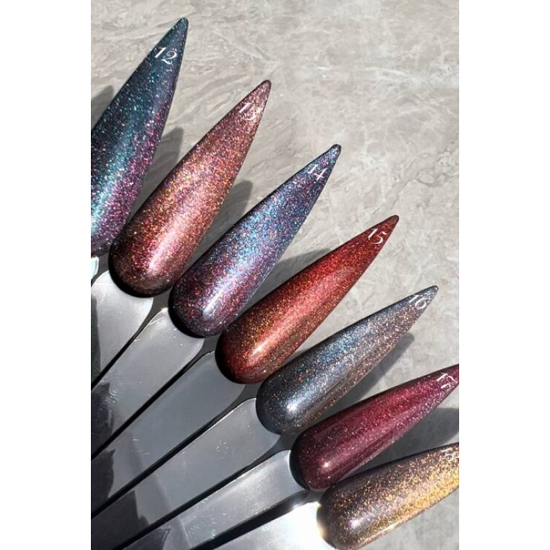 Гель-лак с мельчайшими голографическими частичками придает дизайну фантастический эффект.