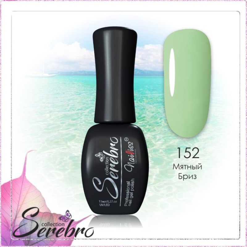 Гель-лак Serebro 152, 11 мл. Гель-лак средней консистенции позволяет избежать затеков и способствует равномерному покрытию ногтевой пластины, не создавая лишнюю толщину. Для плотного цвета достаточно нанести 1-2 слоя средства. Продукт имеет приятный аромат и не тускнеет в процессе носки.