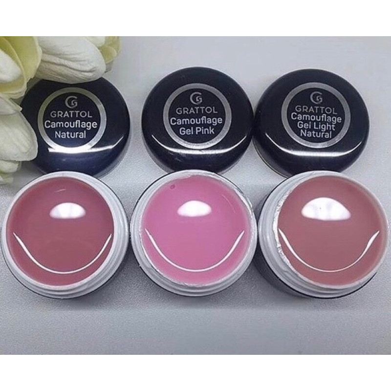Гель Grattol камуфлирующий Pink — камуфлирующий гель для наращивания, моделирования ногтей и ремонта. Имеет натуральный пыльный молочно-розовый оттенок и среднюю вязкость. Самовыравнивается при нанесении, не течет и держит форму, не даёт сколов, отслоек и усадки в носке.