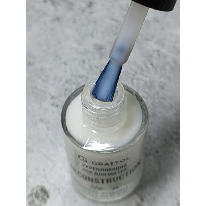 Grattol Color Nail Polish Reconstruction 1 — укрепляющий лак для ногтей. Водоросли, каштан, годжи, фосфолипиды, витамины и кальций обеспечивают укрепление и быстрое восстановление ногтей.