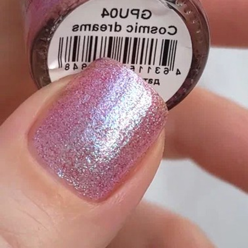 "Cosmic dreams" — прозрачное желе с мелкодисперсионной голубой и красной слюдой. Допускается нанесение в 1-3 тонких слоя. Рекомендовано предварительно покрывать ногтевую пластину слоем базы, 1-3 слоями лака и топом для продления стойкости покрытия. Каждый слой сушить на воздухе не меньше 2-5 минут.