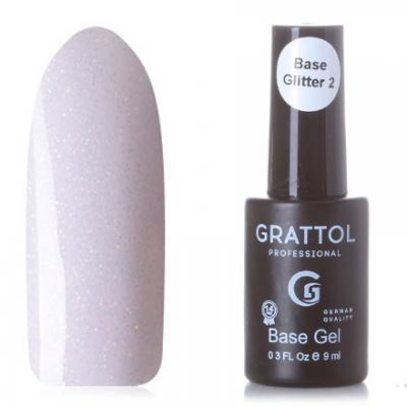 База Grattol Glitter №02 каучуковая, 9 мл. Каучуковое базовое покрытие с шиммером. Самовыравнивается, хорошо перекрывает в один слой, выглядит натурально.