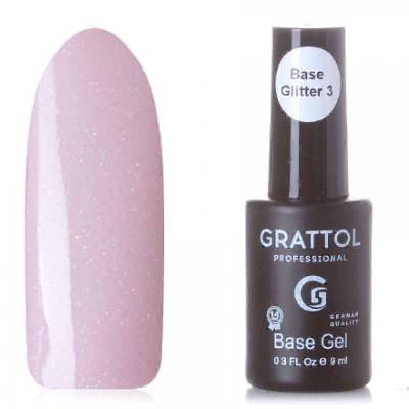 База Grattol Glitter №03 каучуковая, 9 мл. Каучуковое базовое покрытие с шиммером. Самовыравнивается, хорошо перекрывает в один слой, выглядит натурально.