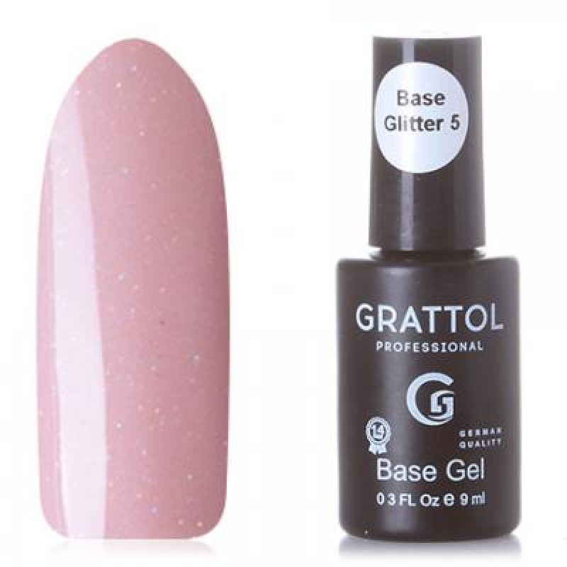 База Grattol Glitter №05 каучуковая, 9 мл. Каучуковое базовое покрытие с шиммером. Самовыравнивается, хорошо перекрывает в один слой, выглядит натурально.