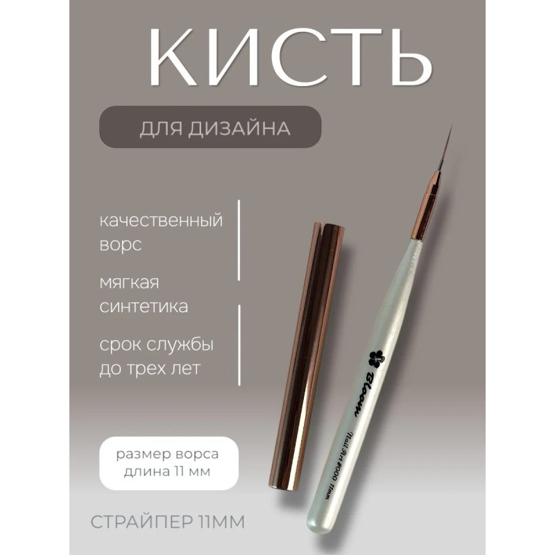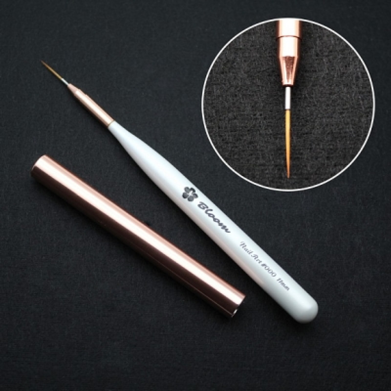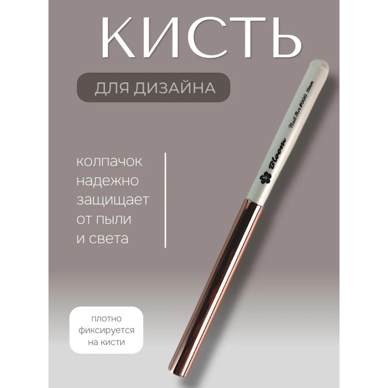 Кисть Bloom для маникюра Страйпер №00 (11 мм) с деревянной ручкой и металлическим колпачком. Искусственный ворс коричневого цвета обладает средне-мягкой жесткостью.