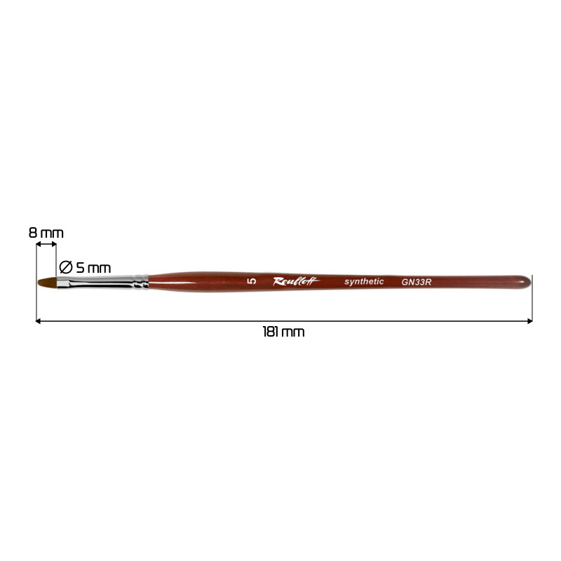 Овальная кисть для полигеля и дизайна ногтей Roubloff GN33R идеально подходит для моделирования гелем и создания гелиевого дизайна. Эта плоская кисть, немного скруглённая к кончику, позволяет накладывать покрытие прямо под линию кутикулы.
