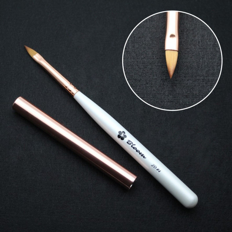 Кисть Bloom для маникюра 3Д №4 с деревянной ручкой и металлическим колпачком. Искусственный ворс коричневого цвета, очень качественный. Ворс не вытягивается, не скручивается и хорошо выдерживает агрессивные жидкости.