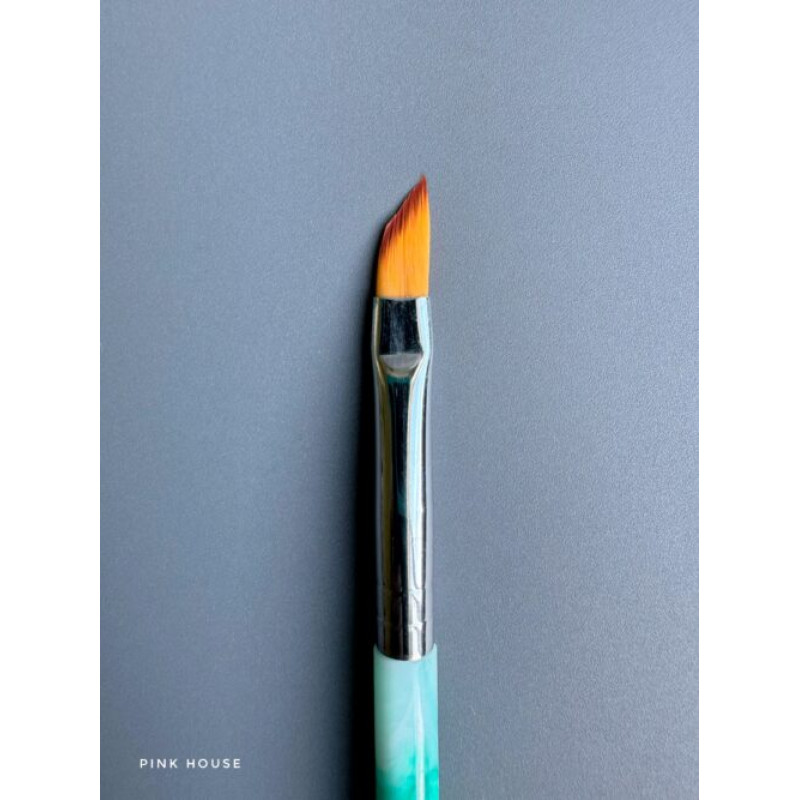 Кисть Pink House Cкошенная плавно (мраморная/розовая ручка)